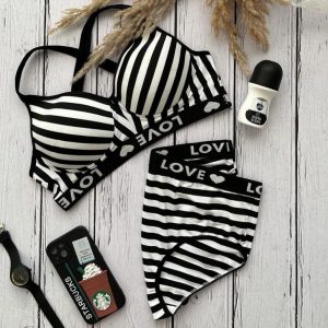 نیم تنه وشورت راه راه مشکی سفید کش لاو اسپرت سایز بندی 75 80 85 90 نیم تنه بدون فنر
