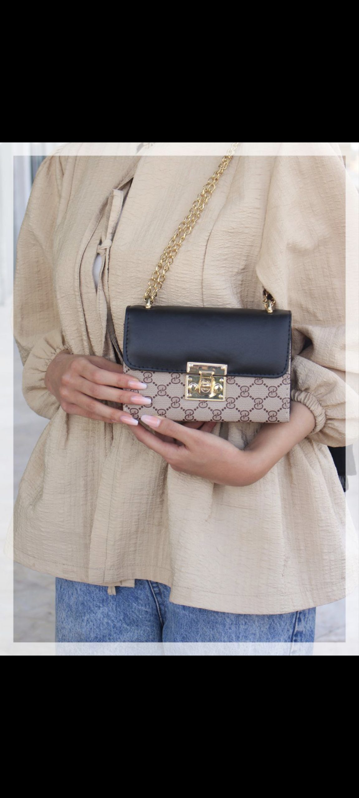 کیف مشکی و طرح مارک گوچی بند زنجیری